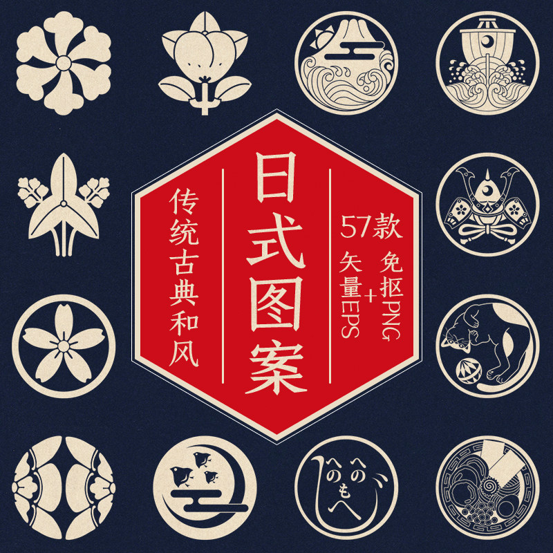 傳統日式家紋圖案素材日本復古古典和風徽章logo標誌eps矢量png